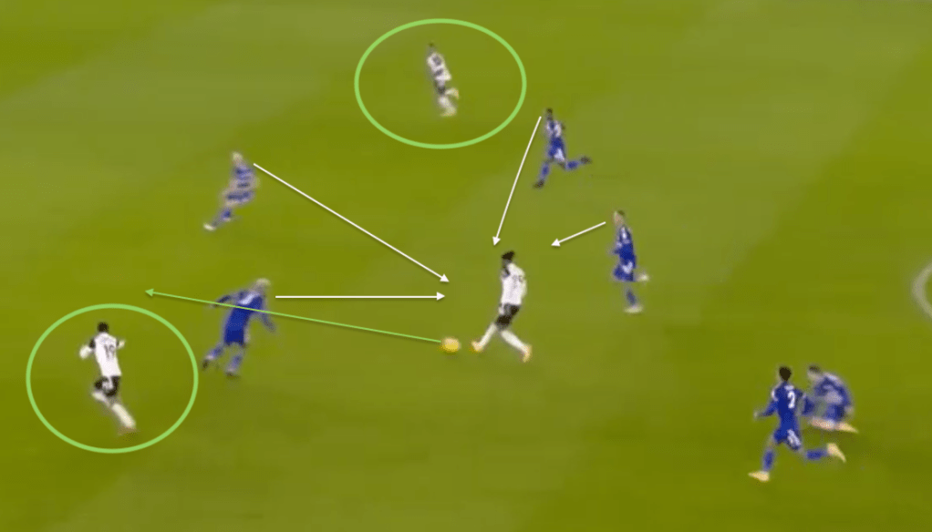 Most of Anguissa’s chances come from late runs into the box or into open channels during a counter. At Villareal, he had more attacking freedom, yet with Fulham deploying more or less a back five against Leicester, it looks like he’ll be doing more of the same.