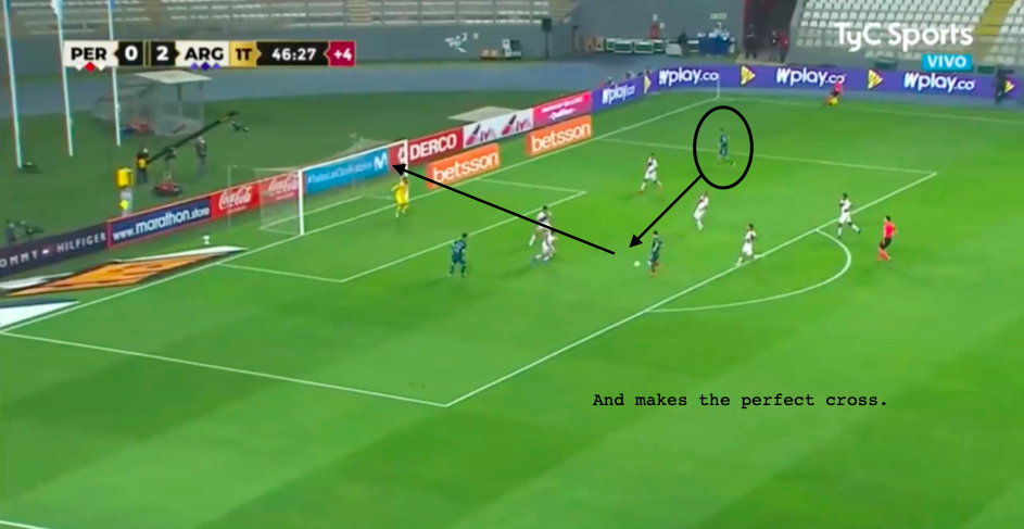 De Paul’s defensive effort should also rightfully be questioned. While he often presses high when the opposition builds from the back, he isn’t consistent and seems to lack the willingness to do the dirty work. In the GIF below, you’ll notice how easy his opponent goes around him before creating a goal-scoring chance. In the modern game, and at a higher level, this lackluster defending isn’t acceptable.
