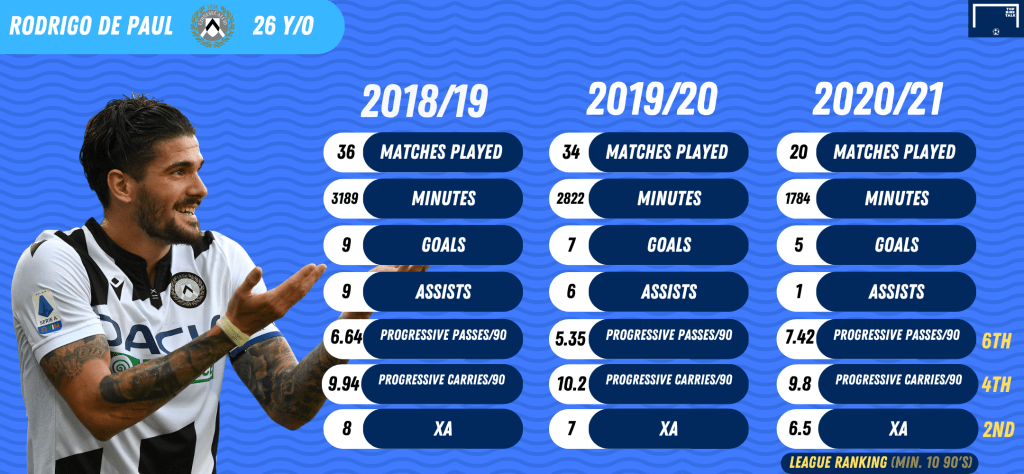 Rodrigo De Paul has a very interesting CV. Although he’s now played 21 times for the Argentinian senior side, the 26-year-old is still at the Serie A strugglers. His recent performances, however, have caught the attention of a number of clubs and fans alike. An all-action and versatile midfielder, progressive and creative chart topper, and on the verge of entering his prime, we believe he’s more than ready for a big move. We explain exactly why below:
