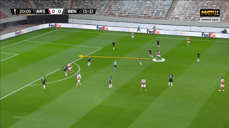 Kieran Tierney returned, so Saka moved further forward in a more advanced position on the left-hand side. As Arsenal’s form improved, their attacking movements did too, and Saka ultimately became more involved in the final third. He became more comfortable in possession, more willing to take on defenders, and more capable of spotting movement ahead of him.