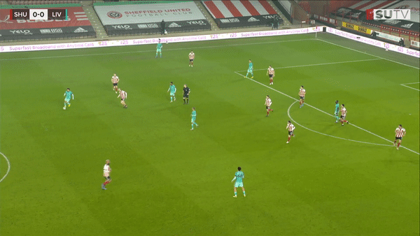 Playing Wijnaldum ahead of Thiago would improve the Reds’ fluidity and unlock the best version of the Spaniard — sitting deep and playing line-breaking passes. Last Sunday against Sheffield United, there was a moment (gif below) in the first half where Wijnaldum surged ahead of Thiago, and the Spaniard slipped the ball in between the lines to him. Gini then beat a man and came close to scoring. This passage of play exemplified exactly what is possible when the two swap roles.