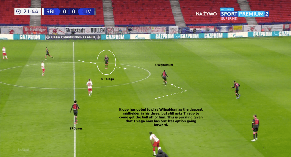 If Liverpool want to best utilize Thiago, Klopp should consider getting him on the ball as much as possible — by playing him deeper — while giving him passing options everywhere.