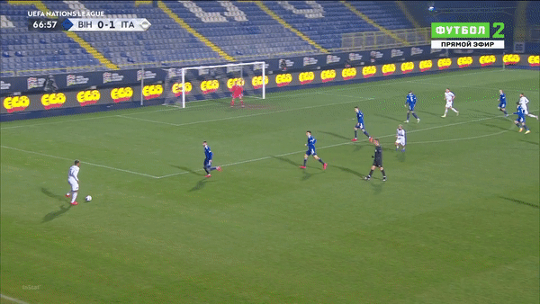 It felt appropriate to write about Nicolò Barella directly after Locatelli – two Italian midfielders who, although both progressive in nature, are very contrasting in their playing styles and compliment each other excellently as international teammates. 24-year-old Barella joined Inter on loan in 2019, before making the deal permanent a year later. He’s fit in like a glove in Antonio Conte’s 3-5-2 system, lining up on the right of the midfield three. He fits the mold of a well-known role coined as the ‘mezzala’ in Italian perfectly – a central midfield player who consistently influences the game from wide areas – and in Barella’s case, his role is all-action, to say the least.