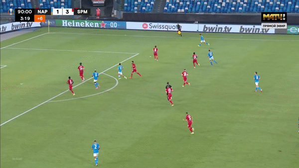 His goal vs. Legia Warsaw in the Europa League emphasizes his relentless nature out of possession, battling (and succeeding) to win a loose ball before playing a give-and-go with Insigne. His straight line speed then becomes apparent; lengthy and rapid strides allows him to create separation in transition with ease. There’s also a very subtle delay in his run, once again showing off his crafty and thoughtful movement, to beat the offside trap before scoring from a very difficult angle.