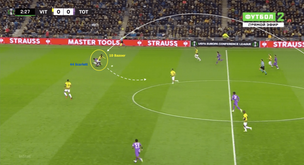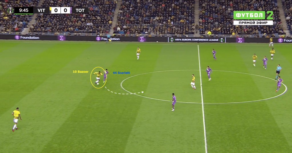 Spurs found it impossible to mitigate Bazoer’s influence on proceedings. He demonstrated such ease and composure that it didn’t necessarily matter whether there was pressure on him or not.