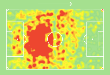 And Bazoer is at the heart of it all. From center back, he attempts an incredible 10 progressive passes per 90 minutes, (data courtesy of Wyscout). Not only does this demonstrate a reliance on him in buildup play, but it shows Bazoer’s willingness to thread the needle. His influence is further reflected in where he pops up on the pitch — everywhere (see heatmap and touchmap below). He is given license to roam forward as a threatening playmaker from deep, often combining for one-twos with teammates around the area.